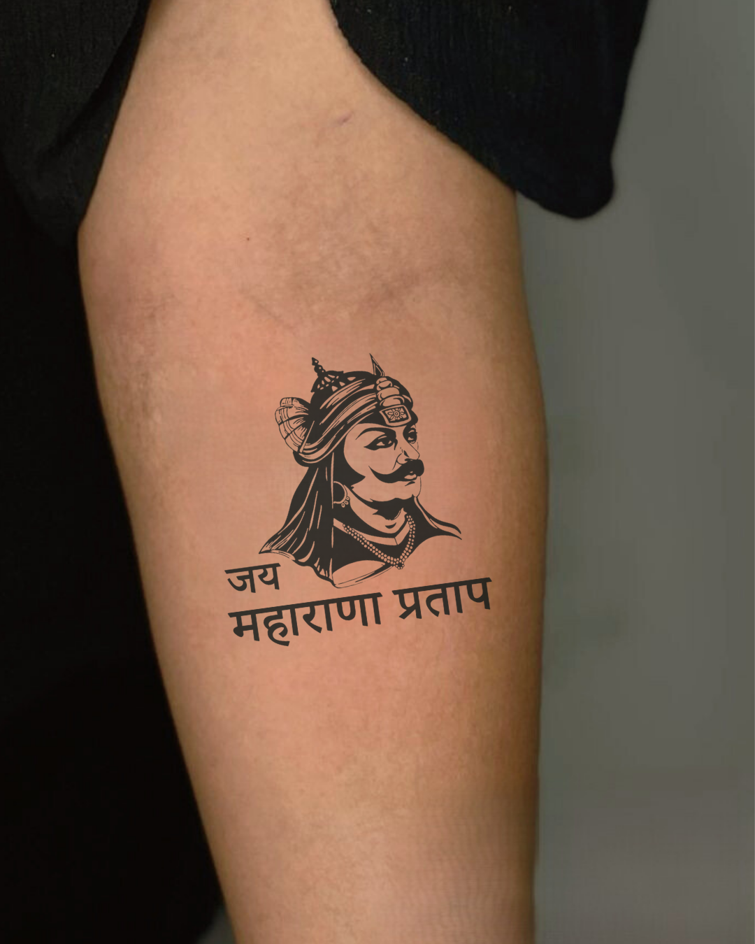 Made with skin-friendly, plant-based ink, this tattoo lasts up to two weeks, offering a temporary yet powerful way to honor the legacy of Maharana Pratap.